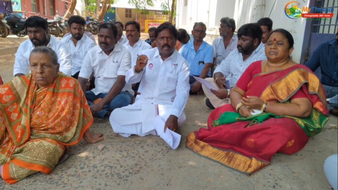 செங்கல்பட்டு அருகே நிலத் தகராறு காரணமாக வீடுகள் இடிக்கப்பட்ட விவகாரத்தில், சம்பந்தப்பட்ட நபர்கள் மீது காவல்துறை நடவடிக்கை எடுக்கவில்லை எனக் கூறி அதிமுக நிர்வாகிகள் மற்றும் பாதிக்கப்பட்ட குடும்பத்தினர் இன்று செங்கல்பட்டு துணை காவல் கண்காணிப்பாளர் அலுவலகத்தை முற்றுகையிட்டு தர்ணா போராட்டத்தில் ஈடுபட்டனர்.