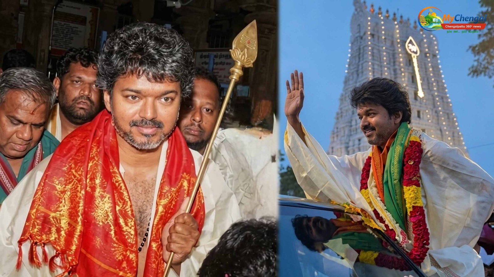 தூத்துக்குடி மாவட்டத்திற்கு வருகை தந்த விஜய்க்கு, திருச்செந்தூர் கோயில் நிர்வாகம் சார்பில் பூரண கும்ப மரியாதை அளித்து உற்சாக வரவேற்பு அளிக்கப்பட்டது. பாரம்பரிய முறைப்படி பட்டு வேட்டி மற்றும் சட்டை அணிந்து வந்த விஜய், மூலவர் முருகப் பெருமானை மனமுருகி வழிபட்டார். தரிசனம் முடிந்து வெளியே வந்த அவருக்குக் கோயில் அர்ச்சகர்கள் பிரசாதம் வழங்கி கௌரவித்தனர். முன்னதாக, திருச்செந்தூர் கடற்கரைக்குச் சென்ற விஜய், அங்குள்ள கடலில் கால் நனைத்து வழிபாடு நடத்தியதுடன், சிறிது நேரம் அங்கிருந்த இயற்கை சூழலை ரசித்தார்.