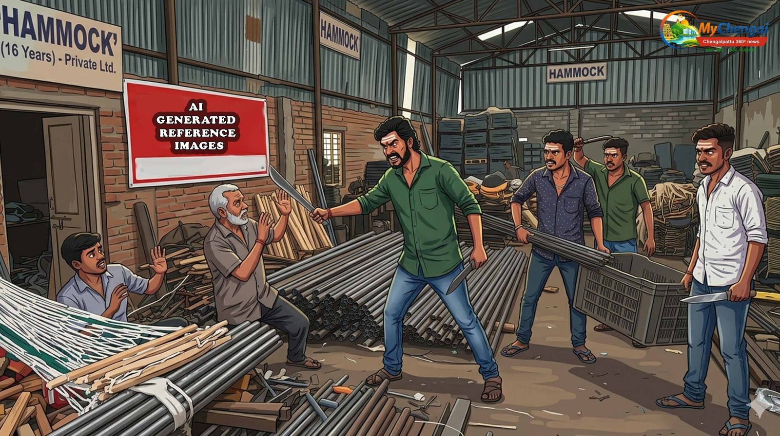 கொளப்பாக்கம் பகுதியில் கடந்த 16 ஆண்டுகளாக ‘ஹேமக்’ (HAMMOCK) என்ற தனியார் நிறுவனம் ஊஞ்சல் தயாரிப்பில் ஈடுபட்டு வருகிறது. தற்போது தொழில் நஷ்டம் காரணமாக உற்பத்தி தற்காலிகமாக நிறுத்தப்பட்டு, அந்த இடம் மூலப்பொருட்கள் வைக்கும் குடோனாகப் பயன்படுத்தப்படுகிறது. இந்தச் சூழலைச் சாதகமாக்கிக் கொண்ட மர்ம கும்பல், பட்டப்பகலிலேயே அத்துமீறி நுழைந்து விலை உயர்ந்த ஸ்டீல் மற்றும் இரும்புப் பொருட்களைத் திருடிச் செல்கின்றனர். இதனைத் தட்டிக்கேட்கும் ஊழியர்களைக் கஞ்சா போதையில் இருக்கும் அந்த கும்பல் கத்தியைக் காட்டி கொலை மிரட்டல் விடுப்பதாகக் கூறப்படுகிறது.